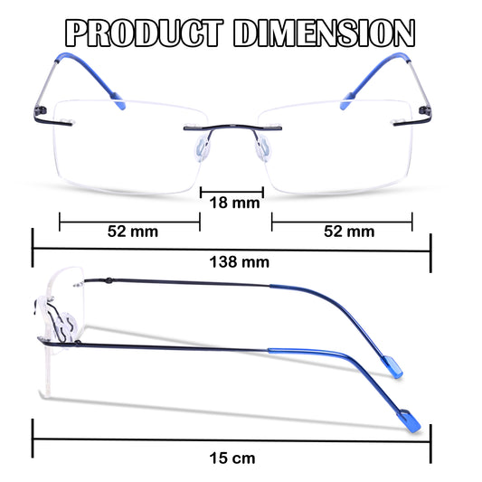 Rimless Big Square Anti Glare & Blue Cut Computer Glass
