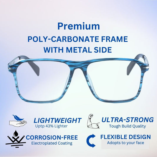 Redex Zero Power Blue-Cut Computer Glass Anti glare Block Harmful Rays Full Rim Rectangle Eye wear Spectacle Eye Frame